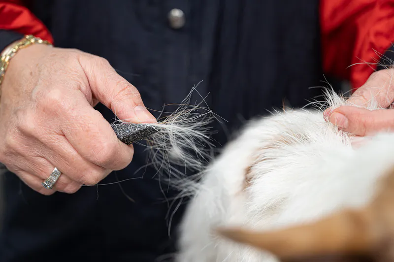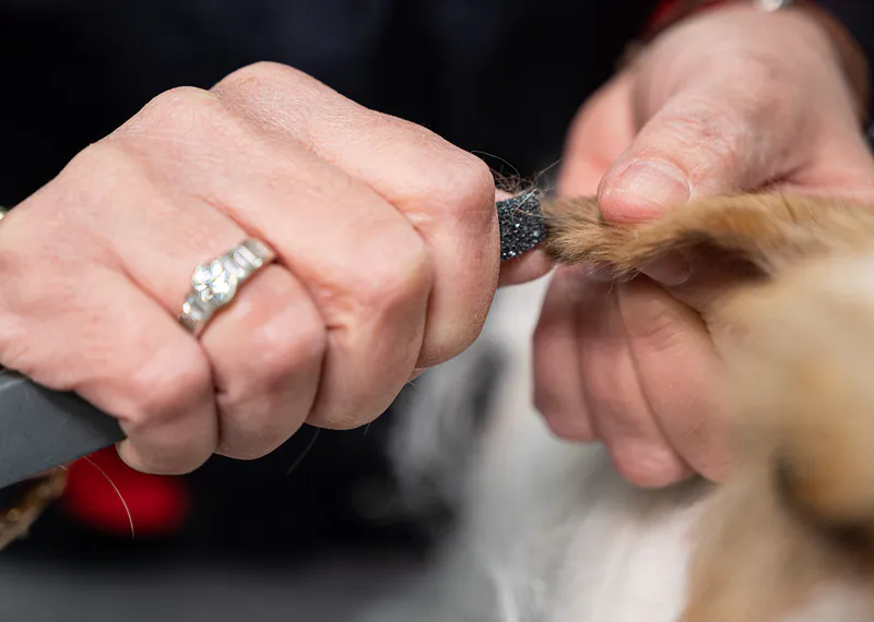 - Ideell for håndnapping og forming av både store og mindre deler av utfordrende, ruhårede (utstillings)hunder, og sikrer at hvert hår blir nappet fra spiss til rot, eller for detaljert arbeid og avslutning.