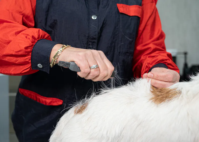 - Perfekt for håndnapping av større kroppsdeler som ryggen og sidene av hunden, slik at du kan ta mer hår og jobbe raskere uten å skade pelsen.