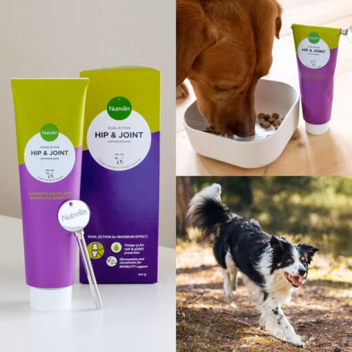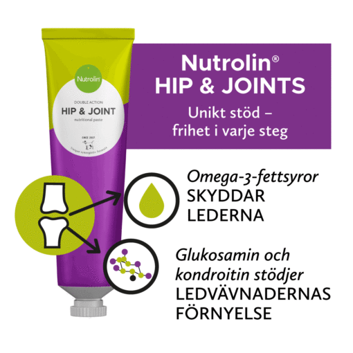Tilsett den smakelige Nutrolin® HIP & JOINT-pastaen i hundens eller kattens mat én gang daglig. En åpnet tube holder seg i to måneder ved romtemperatur og i fire måneder i kjøleskap.