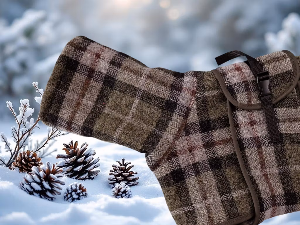 Ulldekken til Cockergutta med bryst/magebelte som har utskjæring til "snoppen"