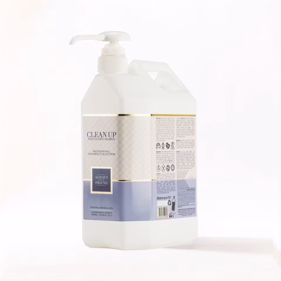 Clean Up Shampoo er en kraftig formel designet for å gi en dyp, grundig rens samtidig som den er skånsom mot huden. Ideell for å fjerne smuss, rusk og overflødig olje uten å fjerne naturlig fuktighet fra laget, etterlater denne sjampoen pelsen frisk og nært. Beriket med økologisk aloe vera og økologisk virgin olivenolje, beroliger og fukter den huden, mens antioksidanter, vitamin E og Panthenol samarbeider for å styrke pelsen og fremheve dens naturlige glans. Som en primtallssjampo er Clean Up Shampoo det perfekte første steget for å forberede pelsen for videre balsam eller avslutningsprodukter, og sikrer optimale resultater. Perfekt for kjæledyr som trenger en grundig rens som opprettholder pelsen og hudens helse og vitalitet.