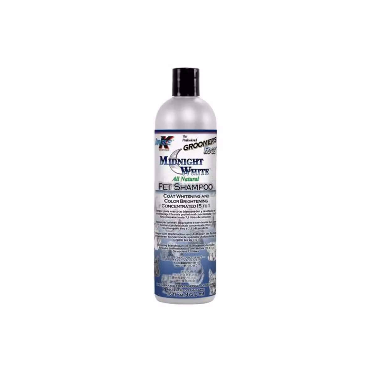 Groomers Edge Midnight White™ renser, pleier og lysner opp hvit pels og fremhever farget pels. Fjerner flekker og lukt. Etterlater pelsen skinnende og sunt med en frisk og ren duft.