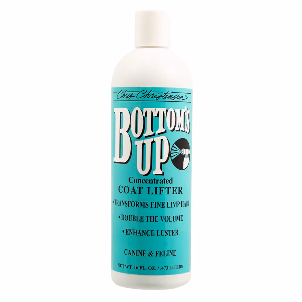 Chris Christensen Bottoms Up Coat Lifter er en konsentrert fortykkende og fyldig spray som løfter og separerer samtidig som den forbedrer glans, volum og håndterbarhet.