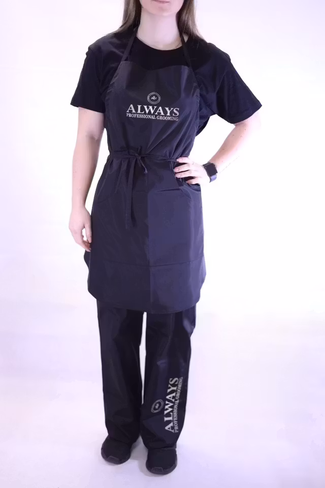Upptäck Always grooming kläder, designad speciellt för hundfrisörer, som perfekt balanserar det praktiska med elegans.