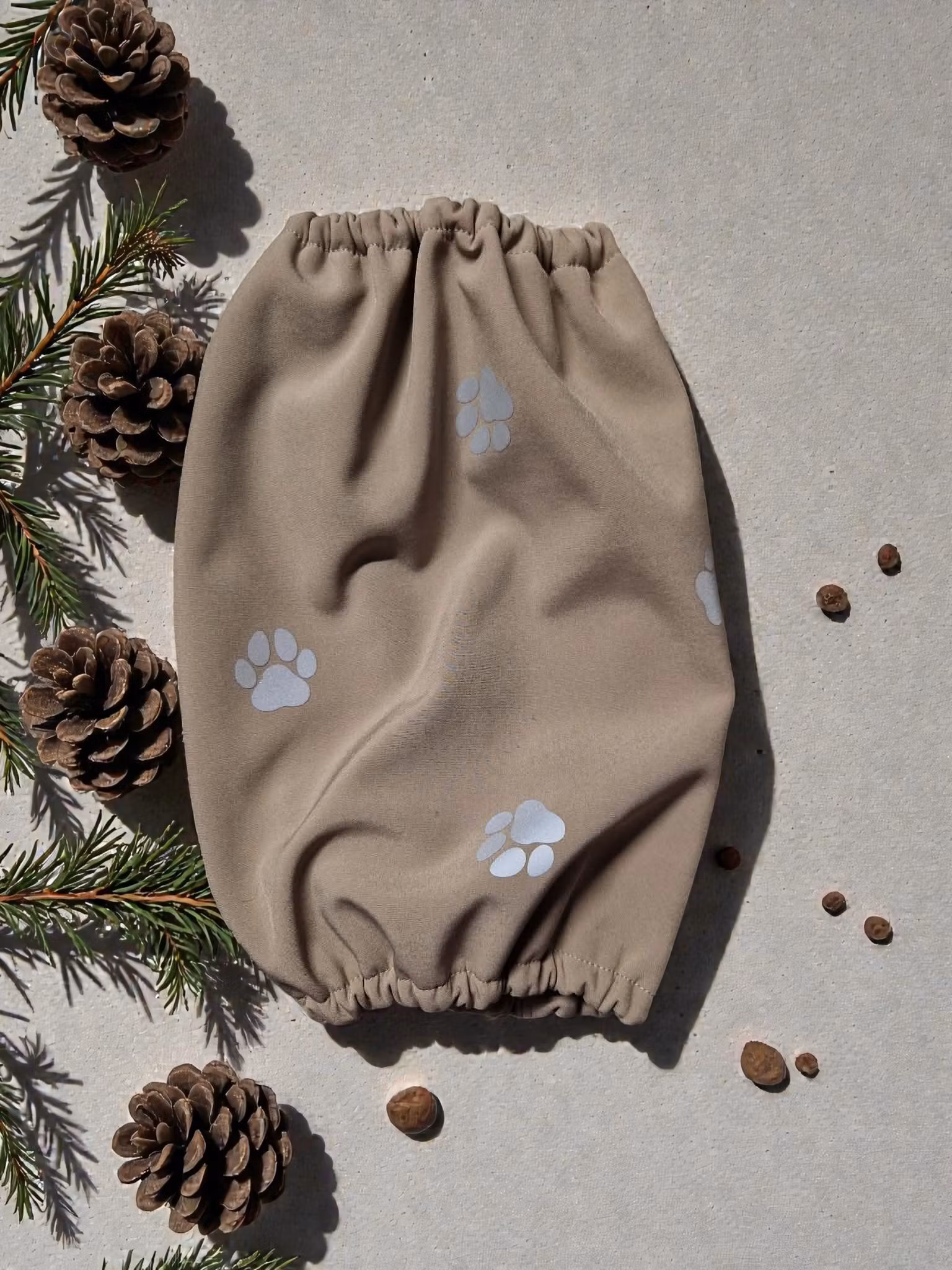 Deilig varm ørehette i beige soft shell foret med mikrofleece.